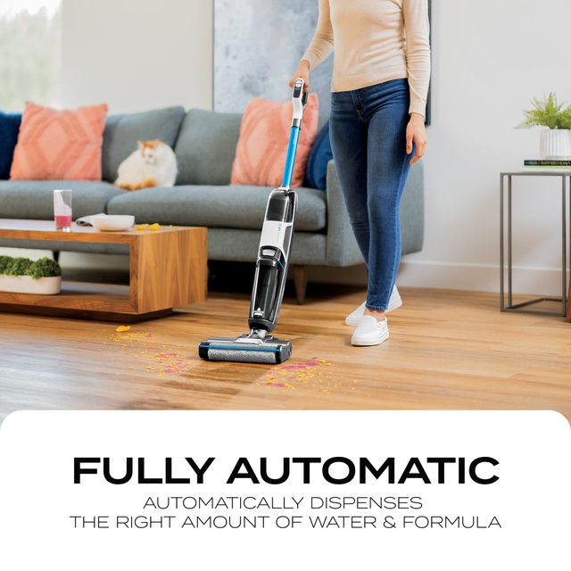 The BISSELL CrossWave HF3 Cordless hard floor wet dry vacuum & mop saves time by combining two cleaning steps in one - vacuuming and washing at the same time. Enjoy easier cleaning with our lightest, quietest, and most automatic CrossWave yet - featuring self-propelled steering, automatic formula dispensing & self-cleaning cycle.