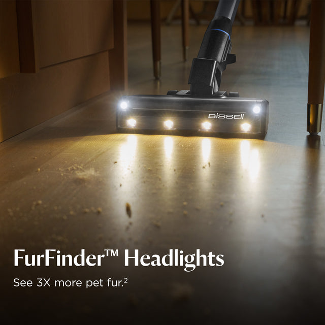 The PowerClean FurFinder™ lets you see 3X more pet fur* with powerful high and low beam FurFinder™ Headlight Technology.