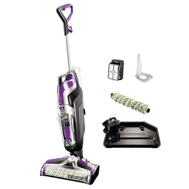 Clean up any mess, any time. CrossWave Pet can vacuum & wash dry debris, dust, hair, spills, & pet messes with Two-Tank Technology, a Tangle-Free Brush Roll, & BISSELL Multi-Surface Pet cleaning solution.