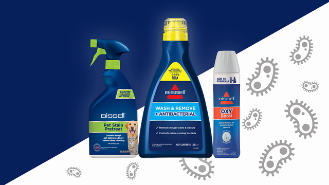 The BISSELL Wash & Remove + Antibacterial Formula is the first deep-cleaner formula on the market designed to clean and control odour-causing bacteria.